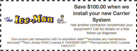 Check out our other financing offers. We give out coupons that can help you save on services such as a follow-up diagnostics or a new Carrier heating and cooling systems installation. Just print out these coupons and show it to our HVAC experts. Important note: only one coupon will be valid per transaction. The coupons have no expiry dates.